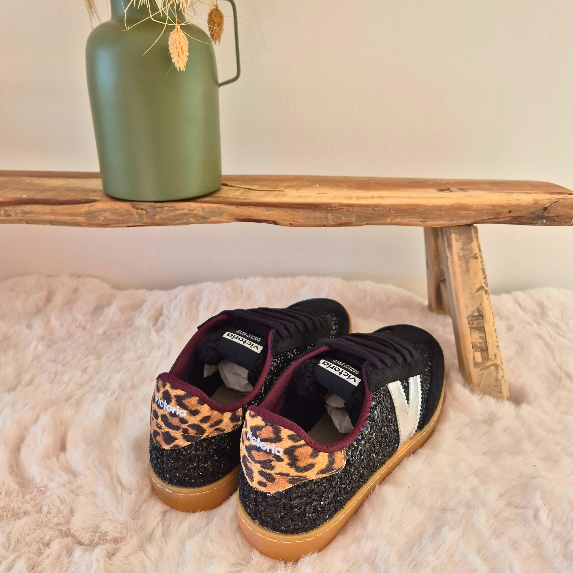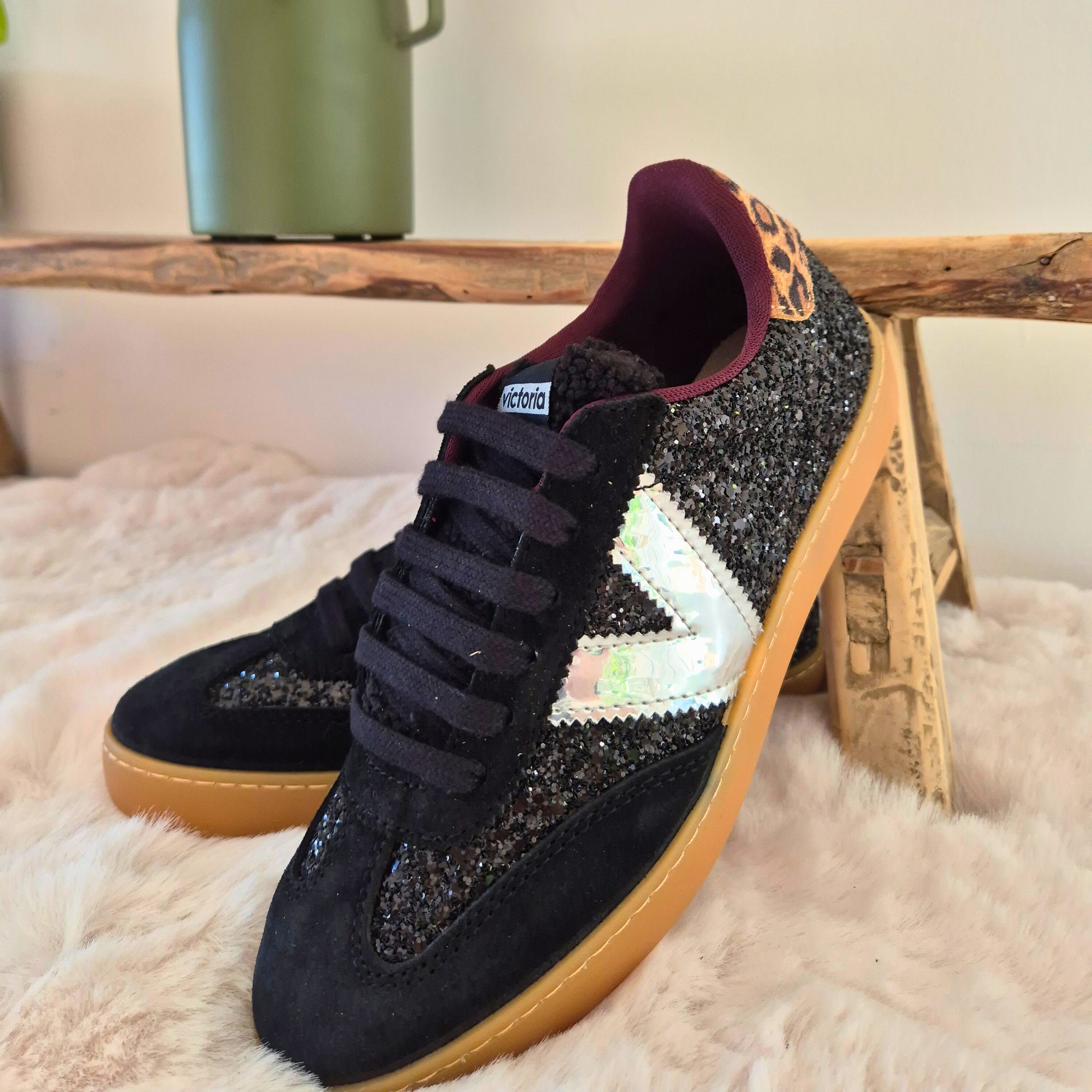 Conçues en Espagne, ces baskets associent un glitter texturé éclatant à une pièce en croûte de cuir pour un look audacieux. Le détail en fausse fourrure sur la languette apporte une touche douce et originale, tandis que la semelle intérieure ergonomique garantit un confort durable. Parfaites pour soutenir vos pas avec style et bien-être au quotidien.