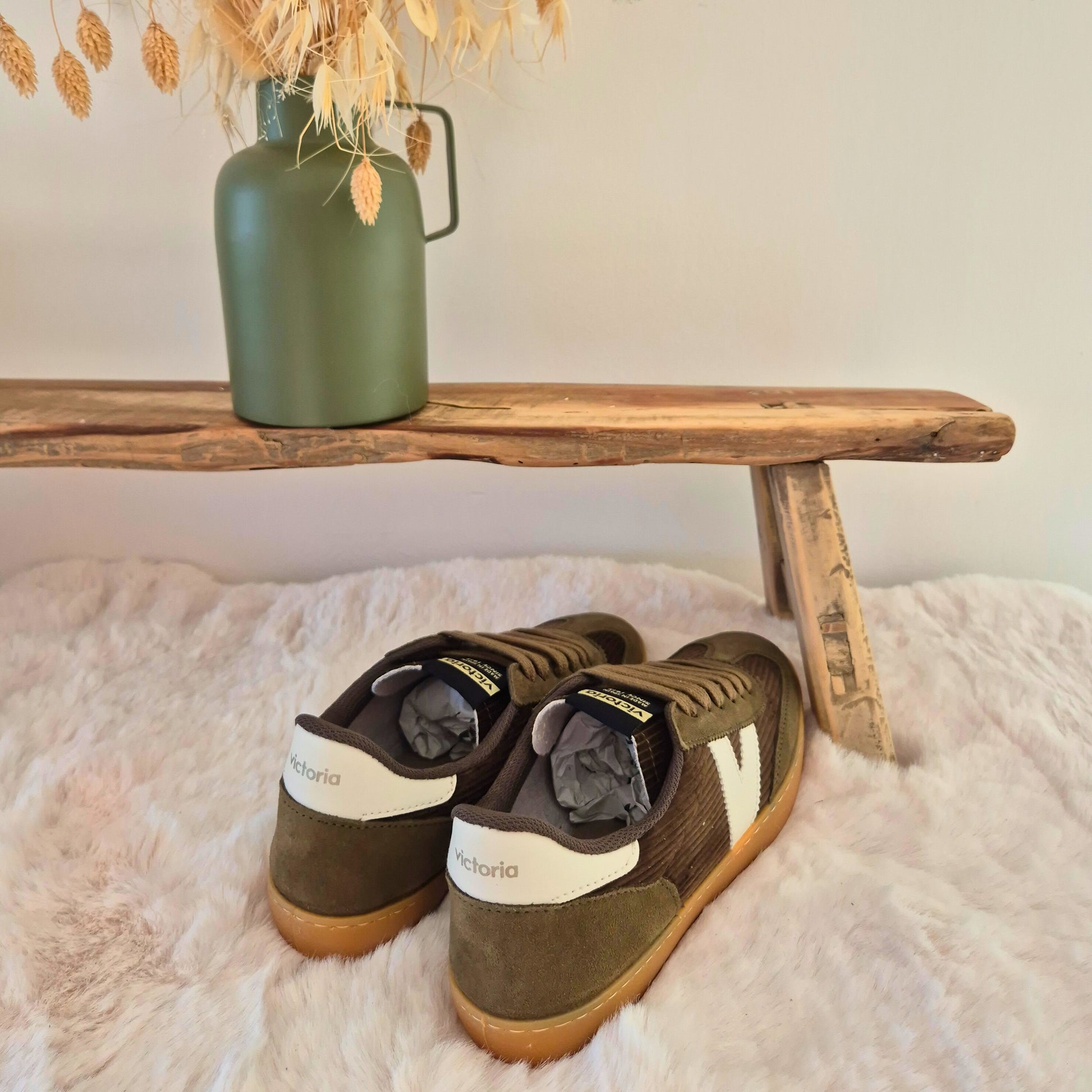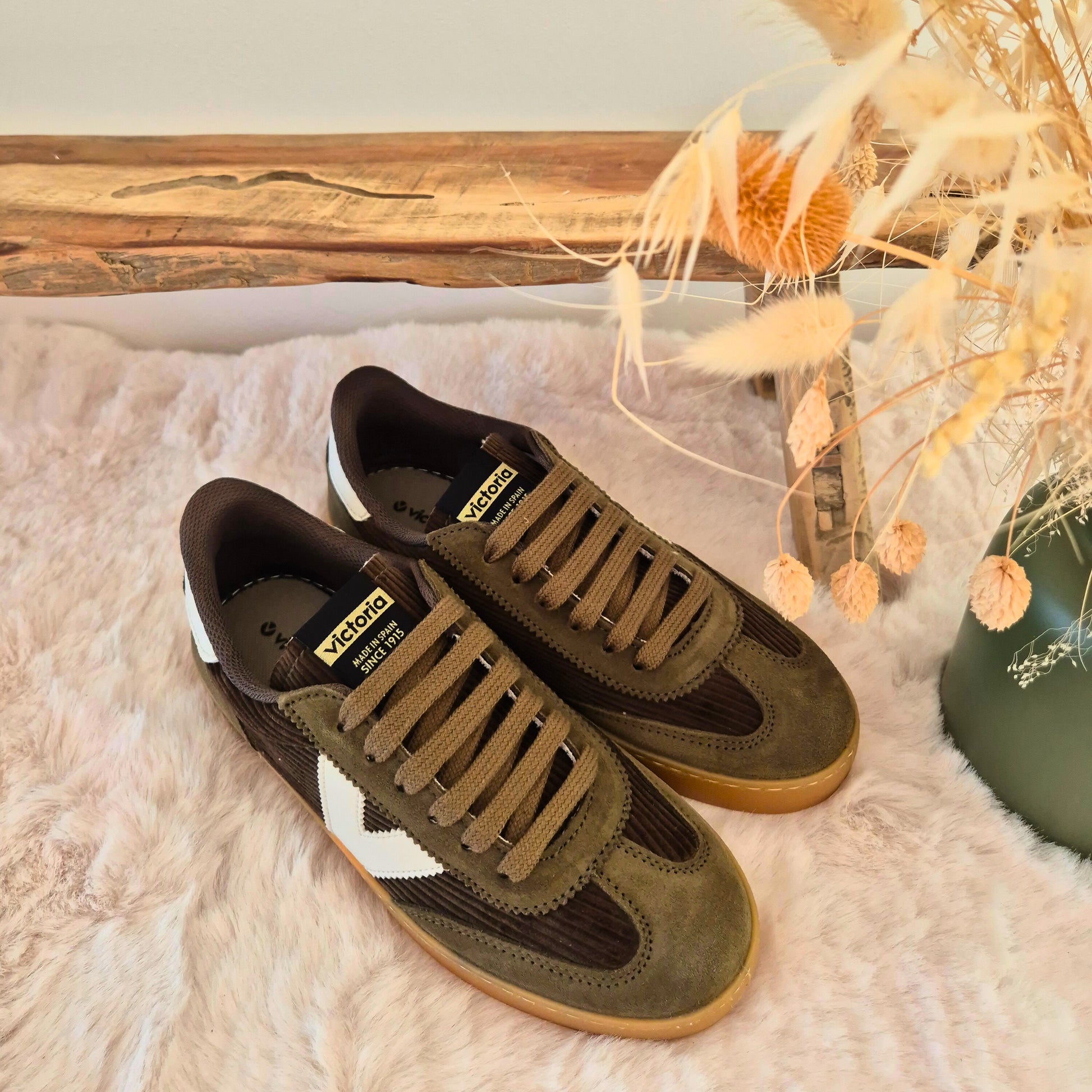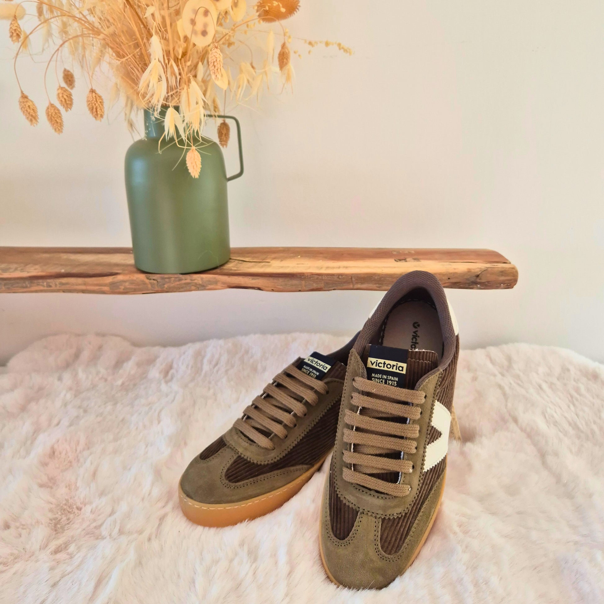Ces baskets kaki en velours côtelé, fabriquées en Espagne, allient style et confort. Dotées de pièces en croûte de cuir et d’une semelle intérieure ergonomique, elles offrent un maintien optimal pour vos pieds tout au long de la journée. Idéales pour un usage quotidien, elles apportent une touche élégante et durable à vos looks.