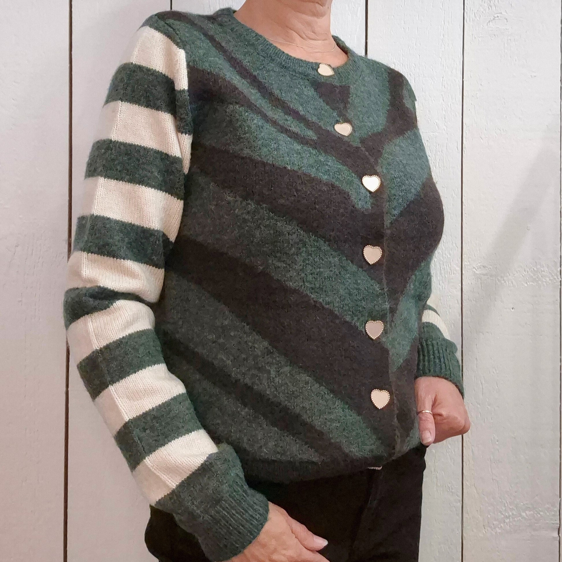 Ce gilet manches longues allie douceur et élégance grâce à sa coupe confortable et ses finitions soignées. Ses boutons en forme de cœur doré apportent une touche raffinée et chaleureuse, idéale pour compléter vos tenues avec délicatesse tout en vous enveloppant de confort tout au long de la journée.