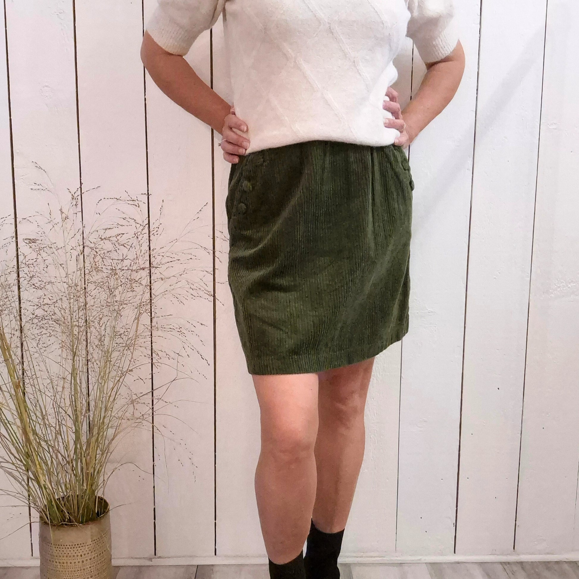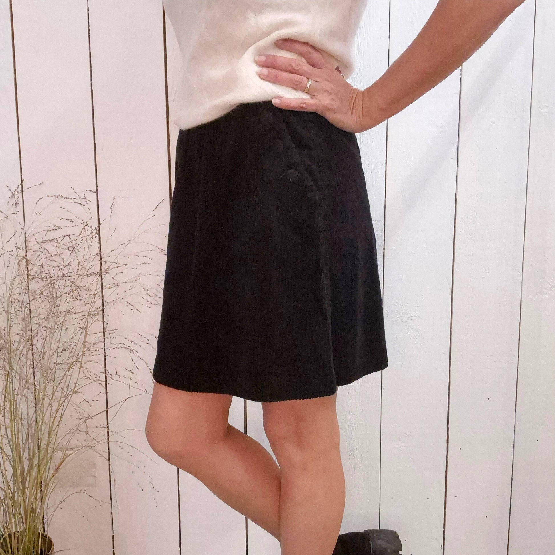 Cette jupe courte en velours côtelé combine confort et style grâce à sa taille élastique offrant un ajustement parfait. Sa fermeture éclair au dos facilite l’enfilage tout en apportant une touche moderne. Idéale pour un look décontracté avec une texture chaleureuse, elle s’adapte facilement à vos tenues du quotidien.