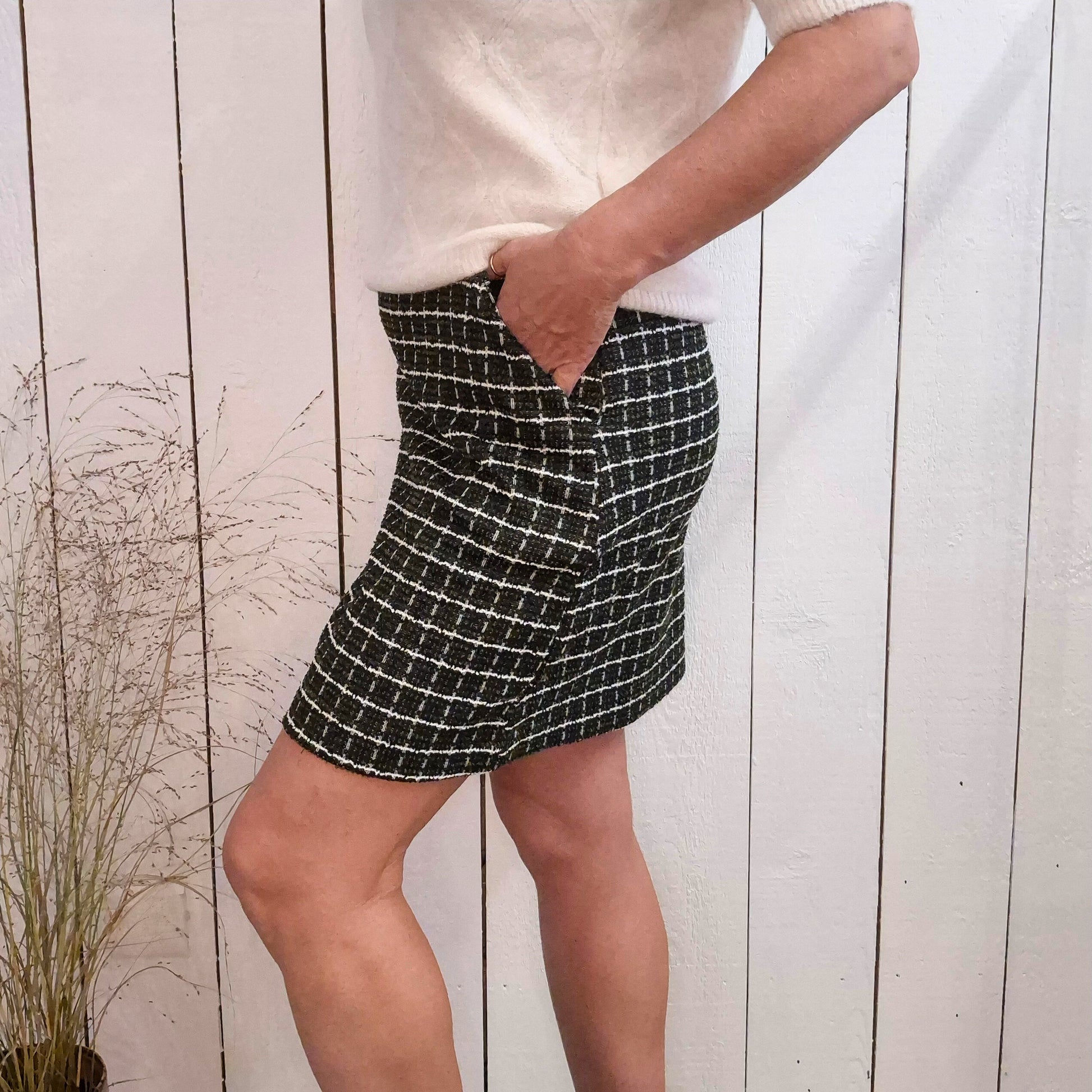 Cette jupe courte à carreaux combine style classique et modernité avec sa fermeture éclair latérale pratique. Sa coupe ajustée met en valeur la silhouette tout en offrant un confort idéal pour vos journées actives. Parfaite pour un look à la fois tendance et facile à porter.