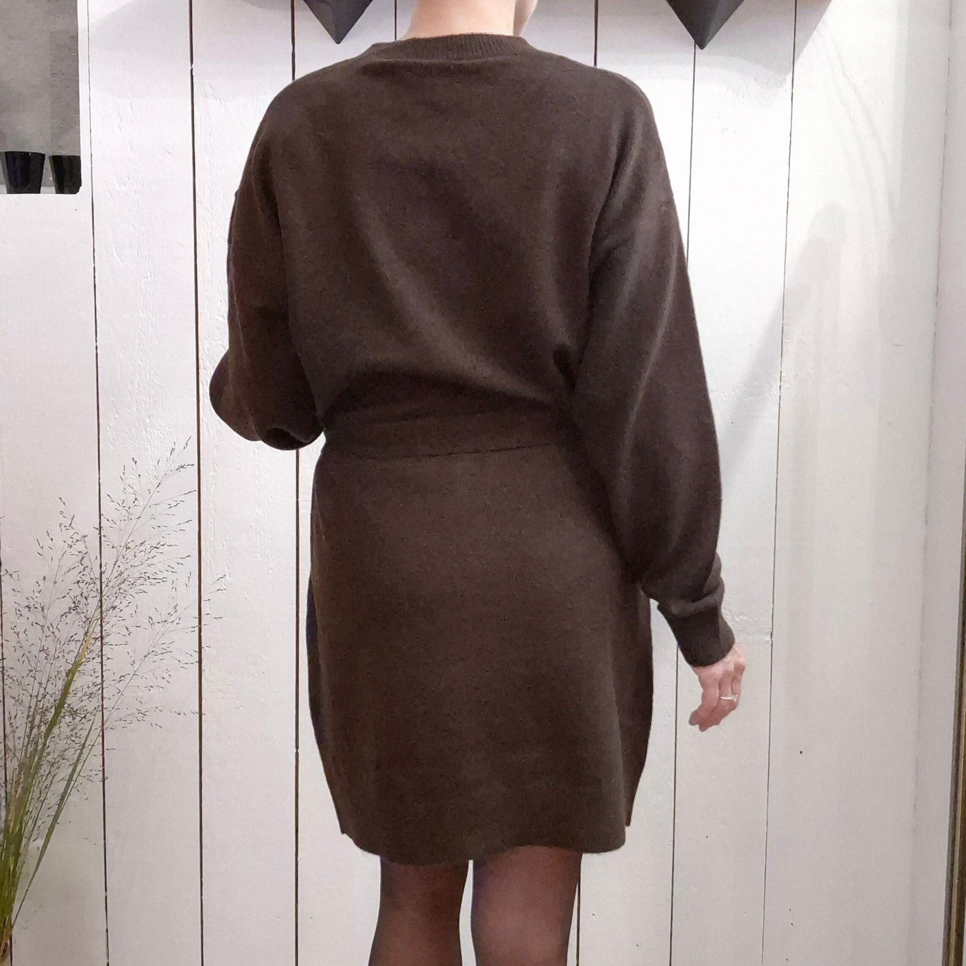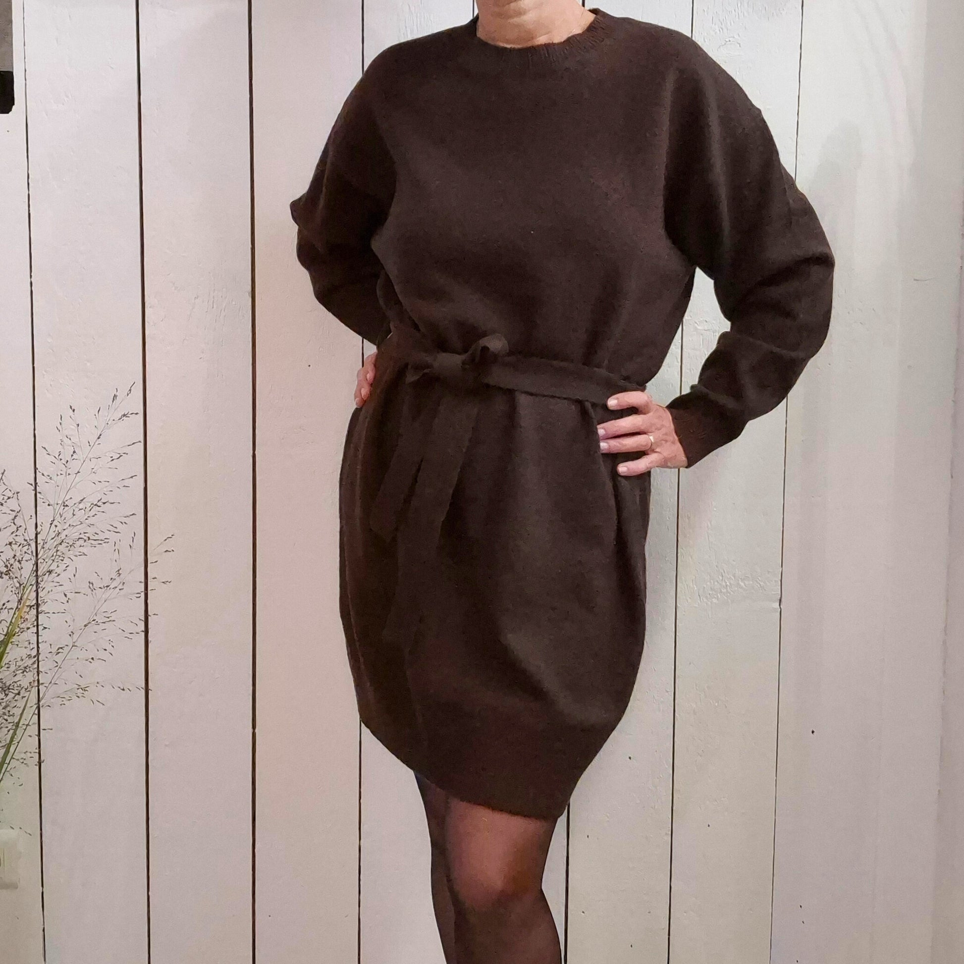 Cette robe courte, contenant 6 % de laine, combine chaleur et confort pour vos journées fraîches. Sa ceinture met en valeur la taille pour une allure féminine et ajustée. Idéale pour rester élégante tout en vous protégeant du froid.