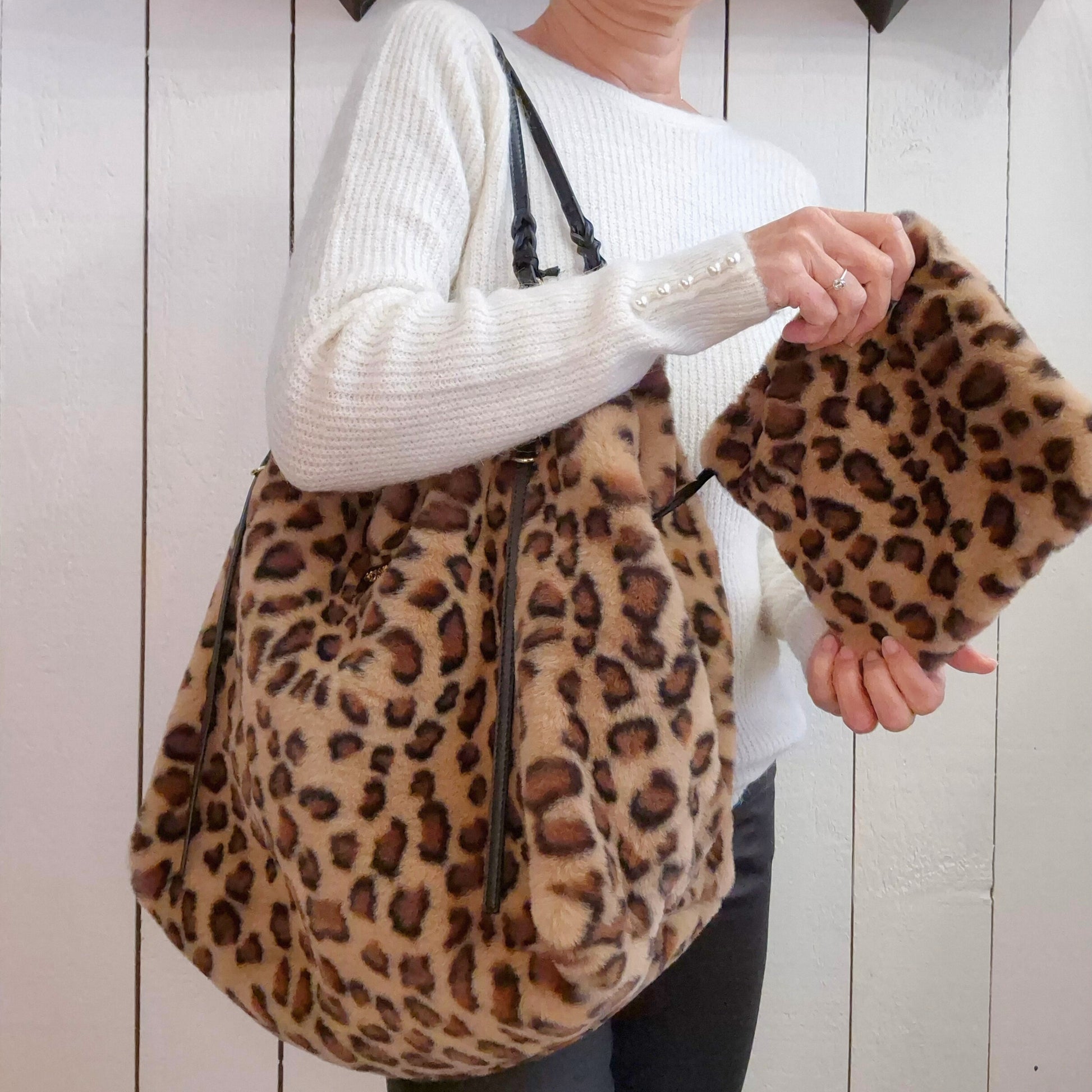 Ce grand sac cabas en fausse fourrure allie élégance et fonctionnalité. Ses deux anses en simili cuir assurent une prise confortable et résistante, tandis que les pochettes zippées à l'intérieur permettent de garder vos essentiels bien organisés et en sécurité. Idéal pour accompagner toutes vos sorties avec style et praticité.