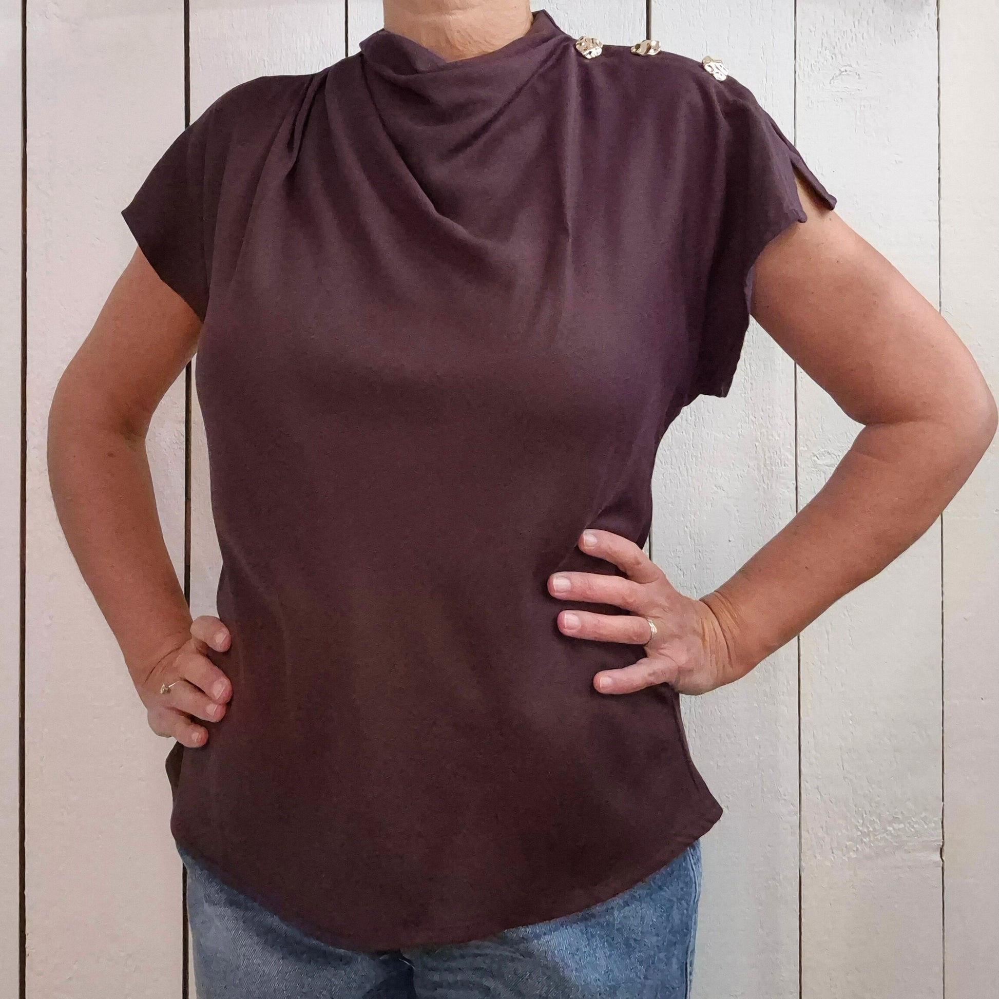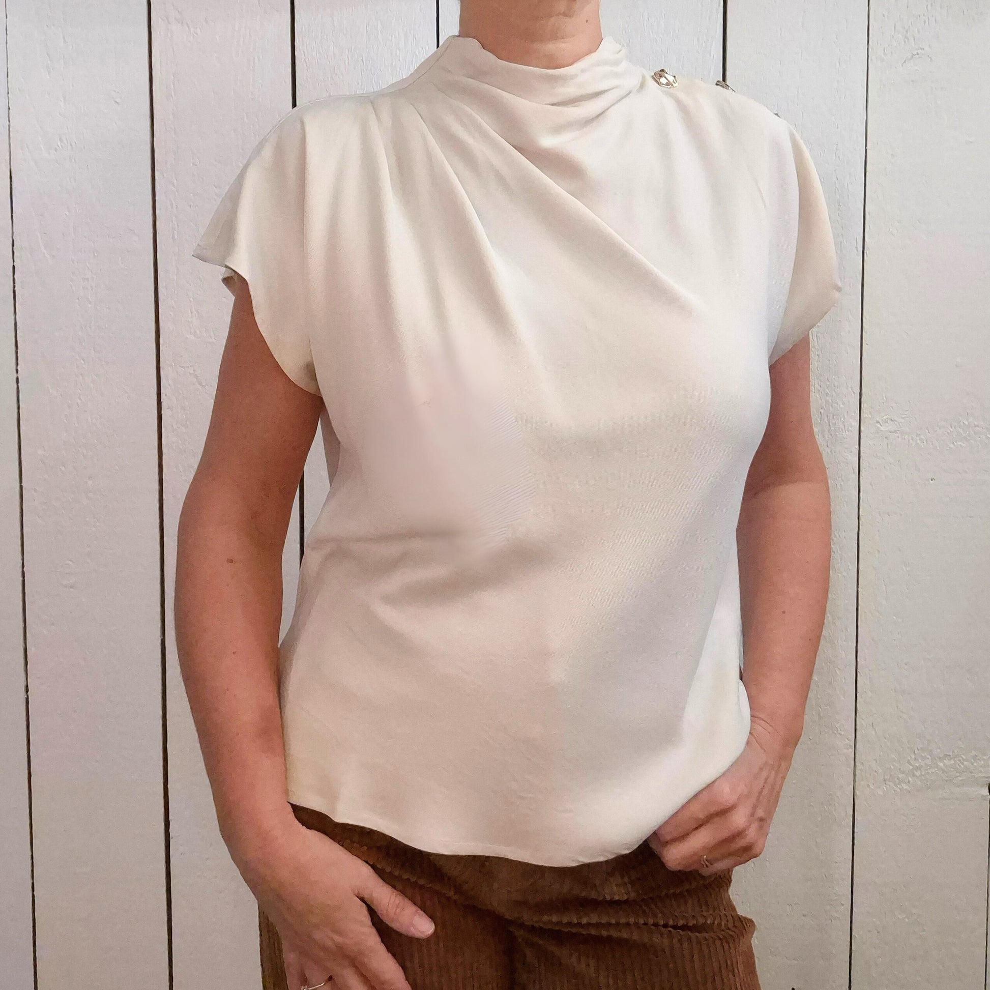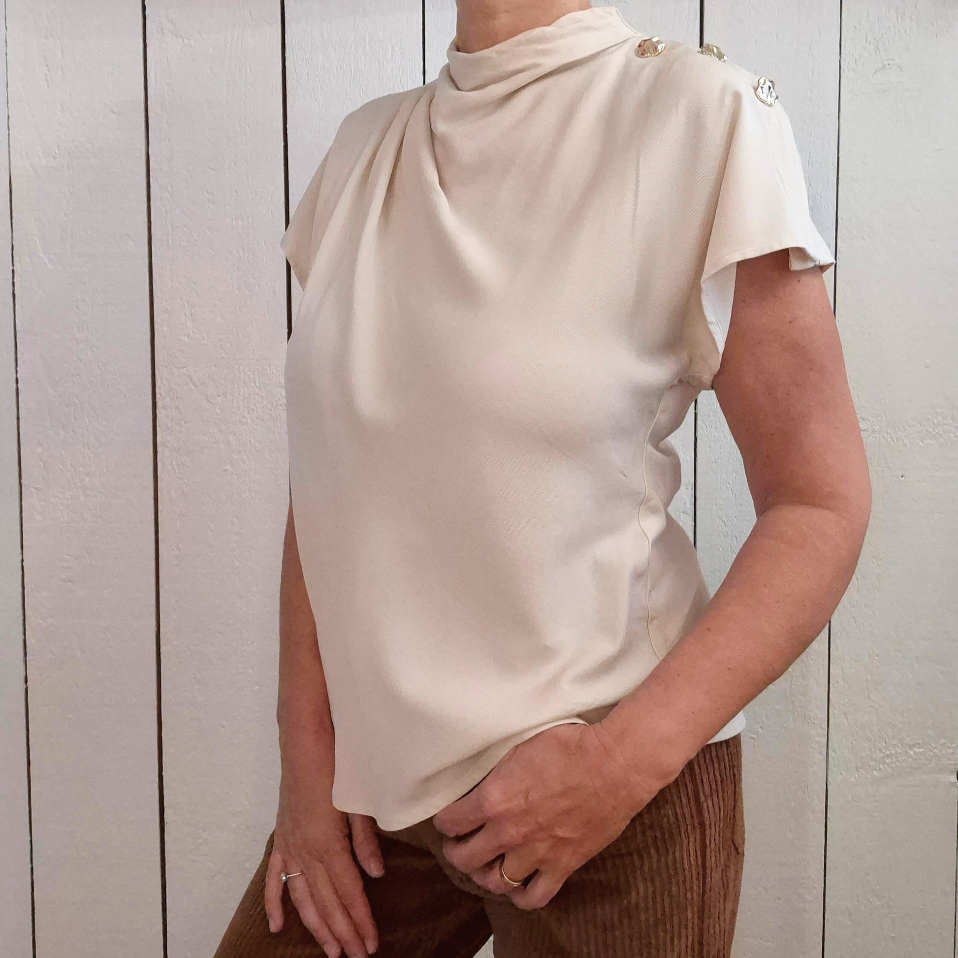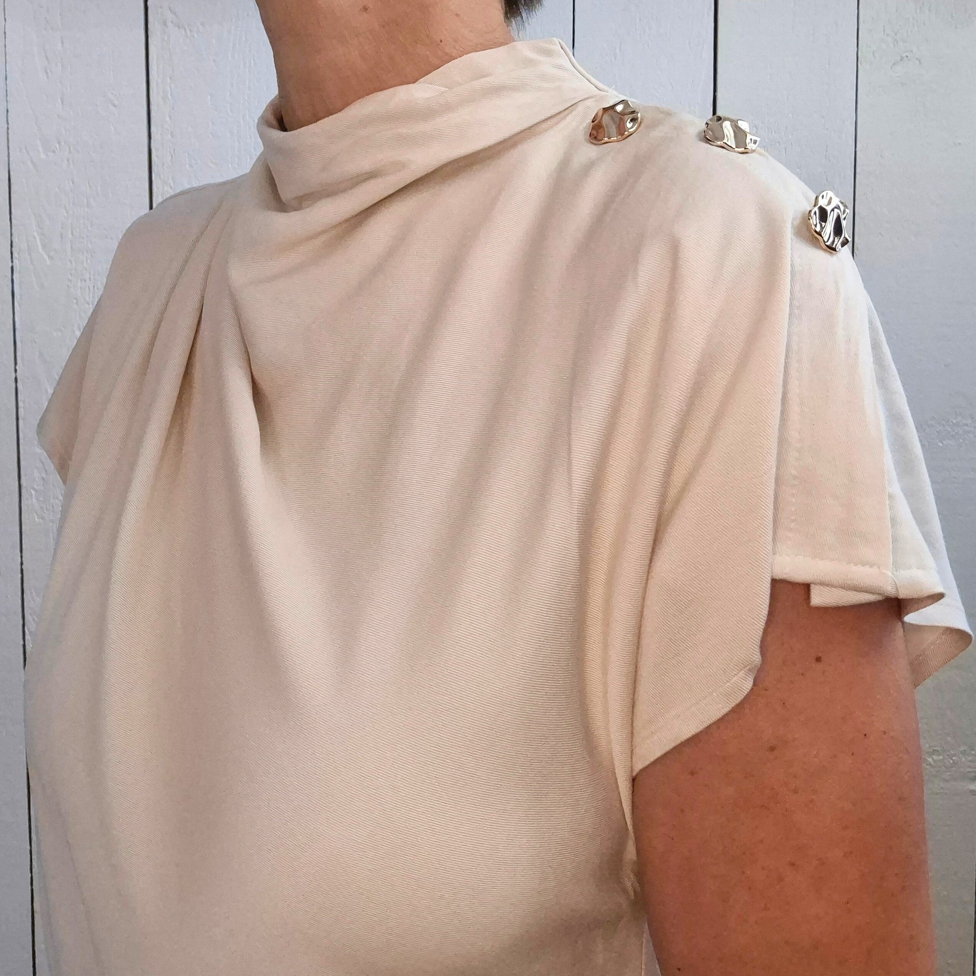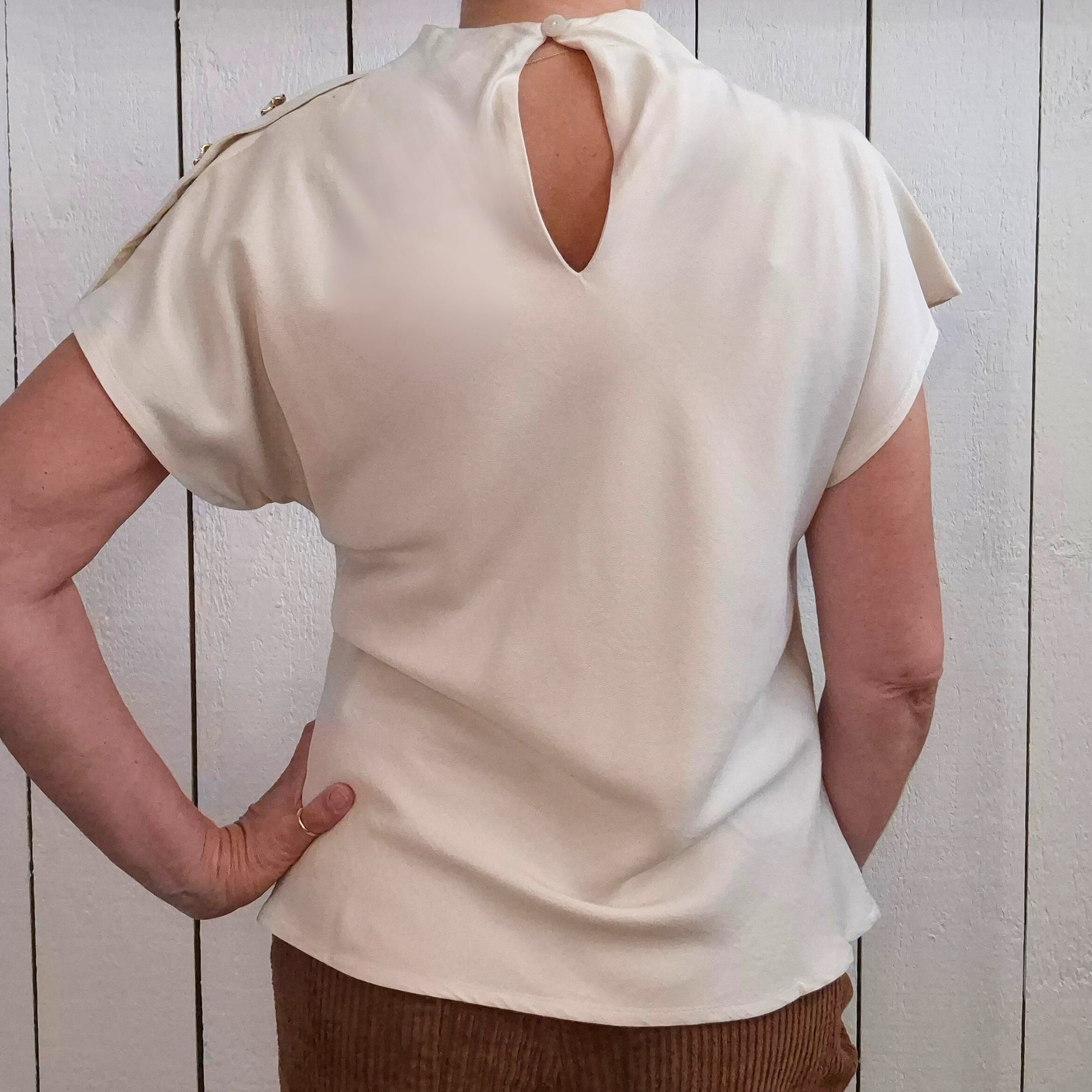 Ce top à manches tombantes en 100% viscose offre une fluidité agréable pour un confort optimal tout au long de la journée. Les boutons dorés ajoutent une touche d'élégance subtile, tandis que la goutte dans le dos apporte une note délicate de féminité. Parfait pour allier style et bien-être au quotidien.